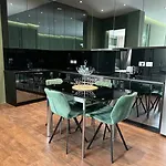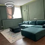 Green Apartment is furnished with a sofa set and features a TV set, ironing facilities, and comforts like climate control. Bathroom amenities comprise a tub, a separate toilet, and a shower, as well as hair dryers and bath sheets.